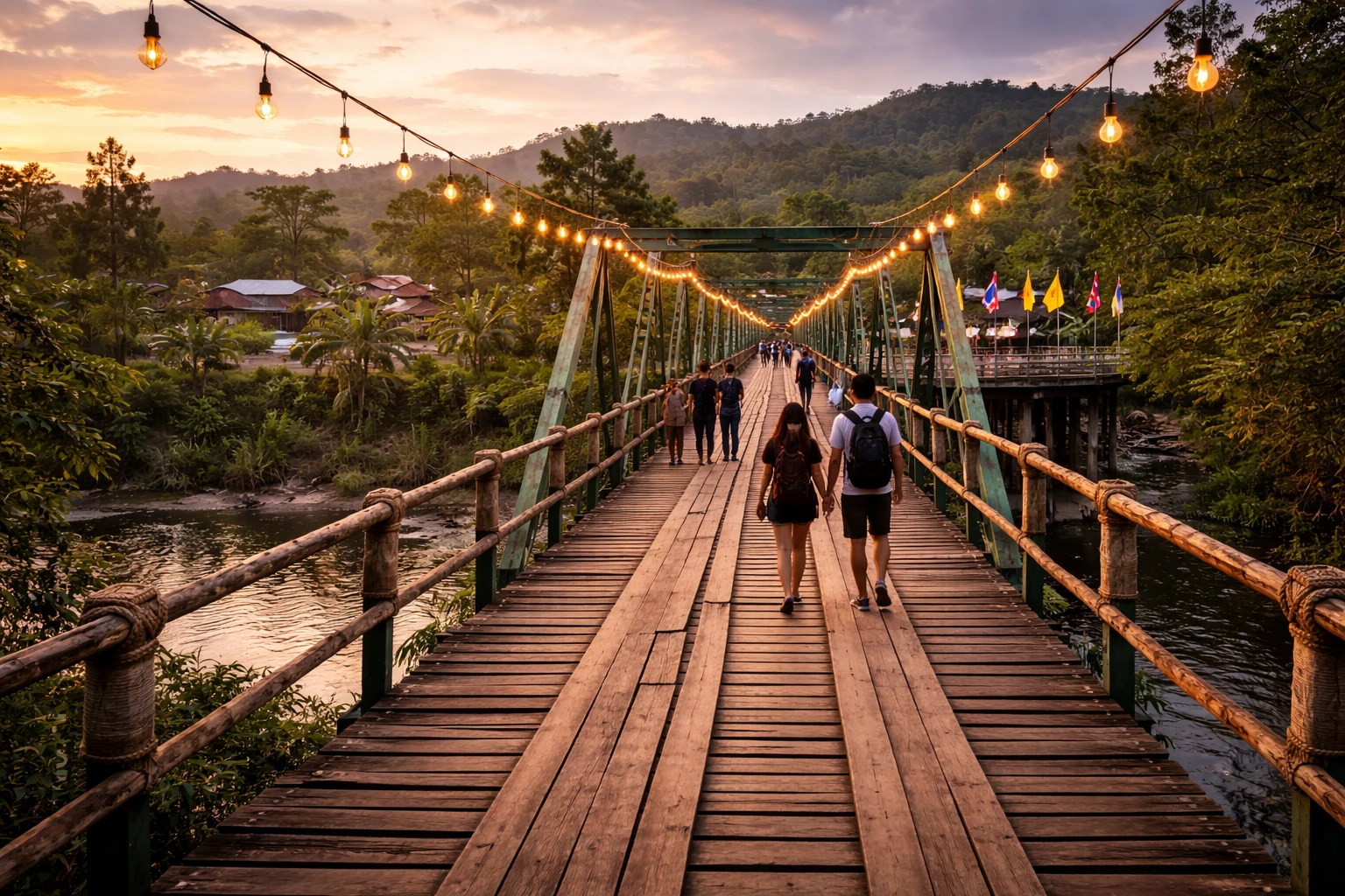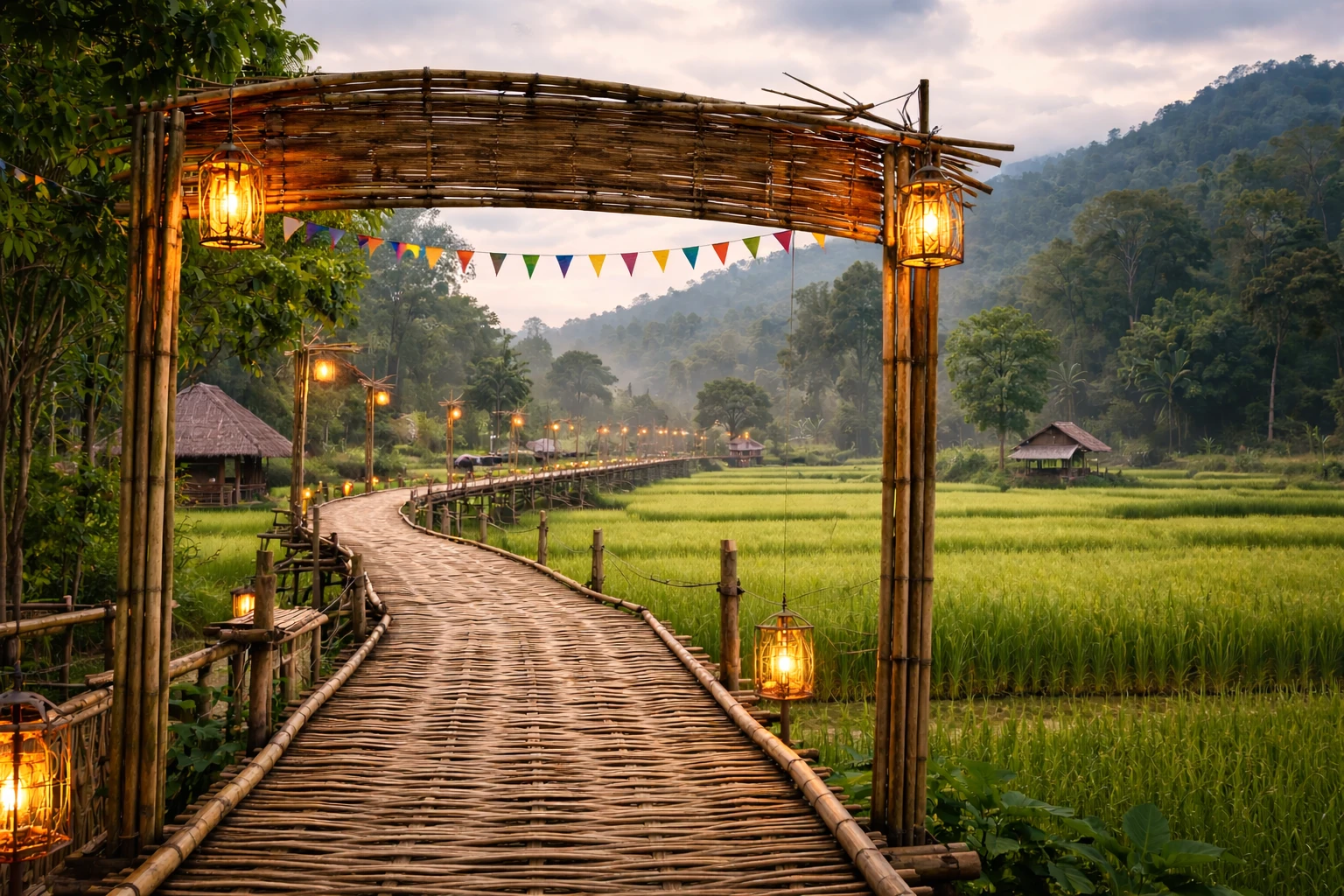 PAI – a small, laid-back mountain town in northern Thailand, surrounded by rice fields, waterfalls, and rolling hills. Known for its creative vibe, cozy cafés, and lively night market and relaxed backpacker energy in one unforgettable destination.